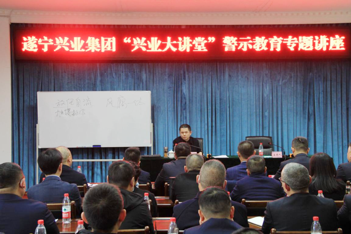 ? ? 1126日,遂寧興業(yè)集團舉辦興業(yè)大講堂警示教育專題講座邀請市紀委副書記、市監(jiān)委副主任韓麟主講授課。集團領導班子成員、中層干部及部分職工代表、各直屬企業(yè)高管60參加講座。